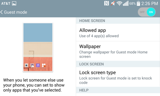 The feature offers you the chance to set a specific unlock pattern and even to select what applications are going to be available in this mode. We are basically referring to a completely separate account on your LG G3 that can be accessed using a special pin code or password (a different one from the normal code that you use every day), letting the new person to use only specific apps and to access limited settings as well.