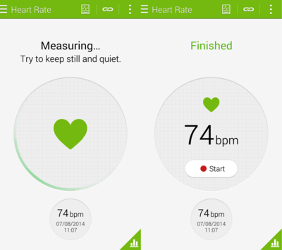 Anyway, if you are curious about your heart rate from time-to-time, or if you’re considering a fitness schedule, a free app from Runtastic, the company which has also offered us the popular GPS running app, offers similar functionality. This Runtastic Heart Rate app that we are referring to uses the camera sensor from your handset to measure your heart rate and it has been tested, so we know for sure that it works and the results are not at all too far off from those taken with Galaxy S5’s heart rate sensor.