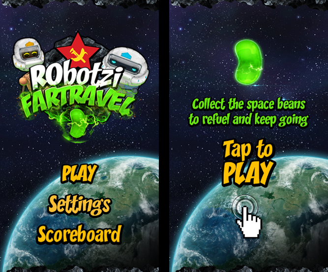 Space! The final fart-tier. Guide the two stranded RObotz through space as they float using the power of flatulence. It isn’t called Fartravel for nothing, so collect the space-beans to refuel and keep going.