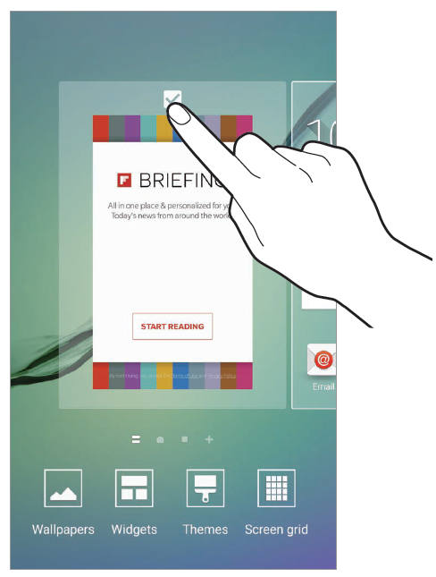 - For the start, simply enter editing mode; In order to do that, just tap and hold any empty area in the home screen to enter editing mode for Galaxy S6 home screen or use a pinching gesture on home screen and you’ll have the same result;