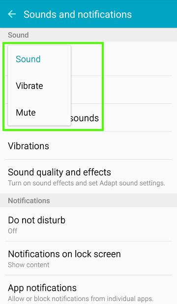 How to access and change Galaxy S6 Sound Mode from Settings app: