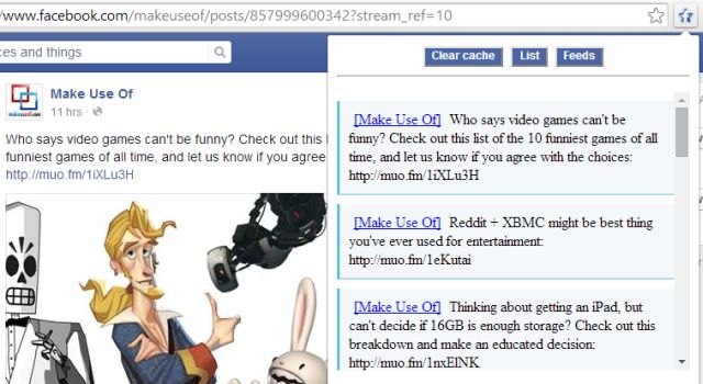 Even more, all your favorites can be easily accessed at any point. With Facebook opened on Chrome, you just have to click the button the extension installed in the upper-right corner of Chrome and your favorited posts will be immediately listed. You can also choose to click a certain item in this favorites list will open the post in a new Chrome tab.