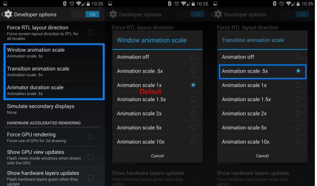 - Change all three of the animation settings mentioned above from 1x down to .5x in order to make your phone nearly twice as fast as it was;