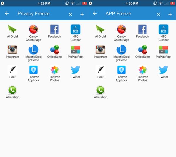 • freeze your apps so that they are completely banned from being active or running in the background. The frozen APPs can be opened from ToolWiz Privacy only;