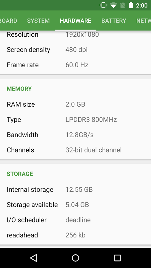 - Hardware – this tab shows every detail that you should know about your SOC, CPU, GPU, memory and storage;