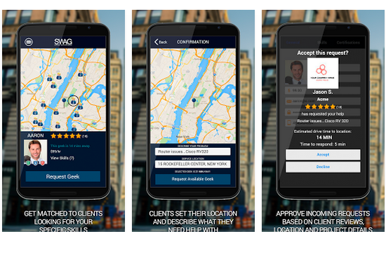 - The app matches you with business clients in your area by taking in consideration your skills and certifications;