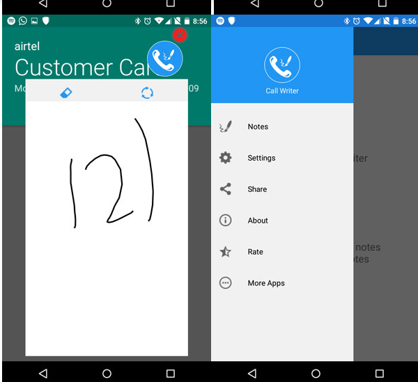Call Writer is an amazing app which gives you the possibility to take and save notes during an incoming or outgoing call. Well, you get a floating icon; when it is tapped, it opens a page where you can draw anything to take down notes and you can be sure of the fact that all the notes are automatically saved when the call ends. Notes can be later viewed in the Call Writer application.