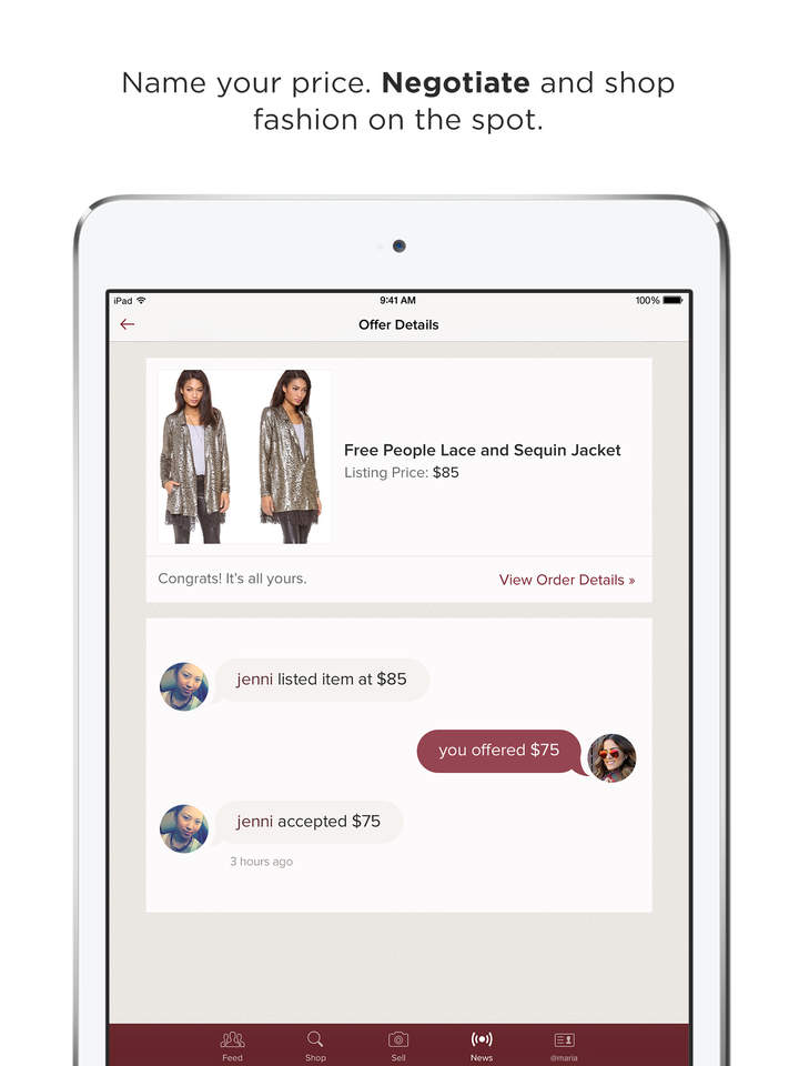 Spring cleaning is ready to start, so you are just a few clicks away from achieving your goal. To be more precise, all you have to do is to take advantage of your camera button to photograph your item and enhance the photo with one of the eight filters offered by the app. You must also describe it and fill out additional info to sell your product as soon as possible: Category, Size, Brand, Color, as well as Original and Listing Price.