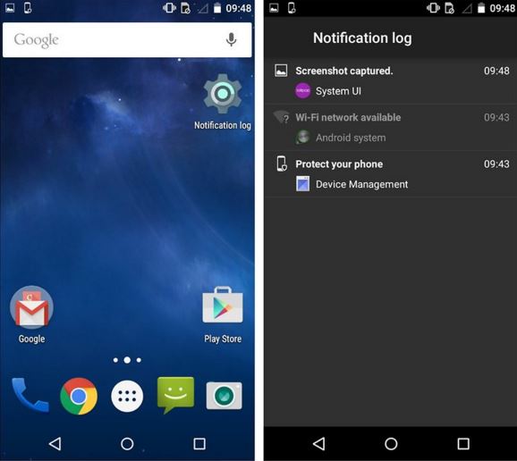 - A notification log shortcut will appear on your home screen as well. You must tap it right away and here it goes! You can see the notification history with the “lost” notifications there too. To be more precise, you can see active notifications in white, as well as the notifications that you closed in gray;