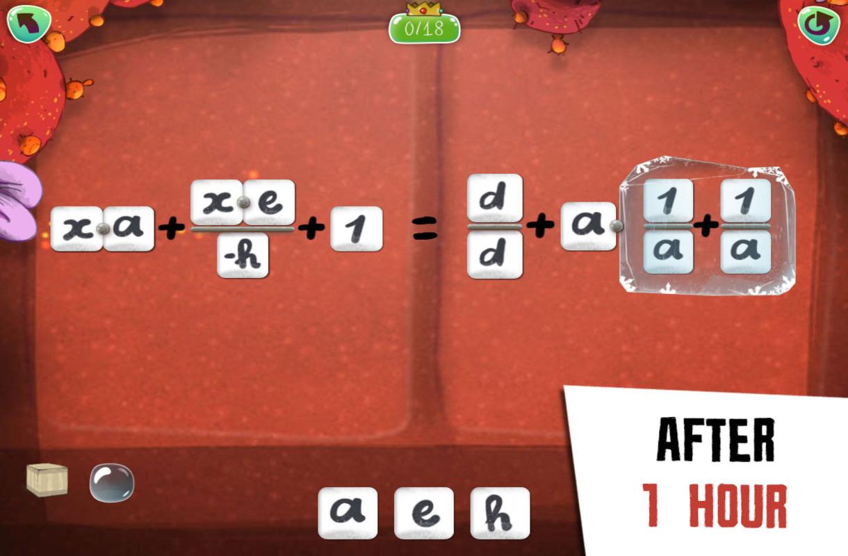 Children have the chance to learn how to solve equations in a playful game environment where they are encouraged to be creative. By manipulating cards and trying to isolate the DragonBox on one side of the game board, the child learns the operations required to isolate X on one side of an equation. Little by little, the cards are replaced with numbers and variables, revealing the math behind the game.