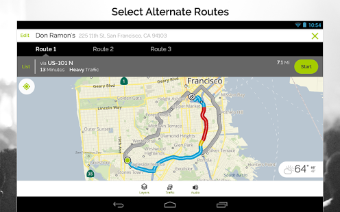 The Mapquest Android app is the best tool to use if you want to find the ideal mode of transportation based on the time of day, cost, situation, weather and not only! After all, the app has integrated various modes of transportation, including Uber and car2go nationwide and public transit in various cities. In addition, you can also avoid the route around accidents, plan multi-stop trips, and find alternate routes in no time.