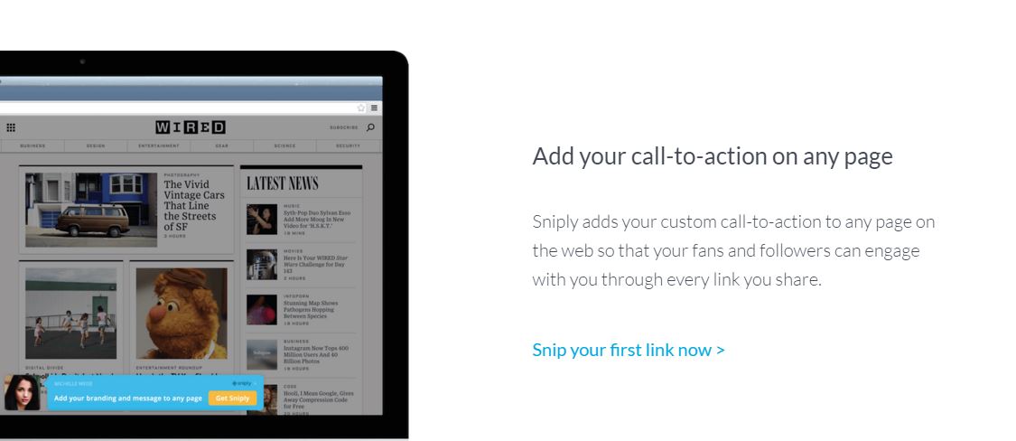 When a certain user clicks on a Sniply link, he can see both the shared content and call-out displaying your message.