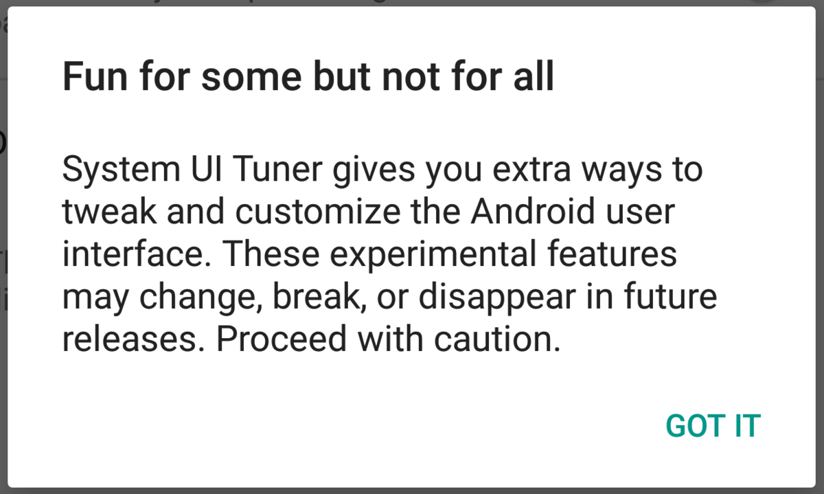 - Long press that gear icon which will then rotate. You can release your finger from the gear icon when it rotates and when you get a pop-up toast message telling you “Congrats! System UI Tuner has been added to Settings”;