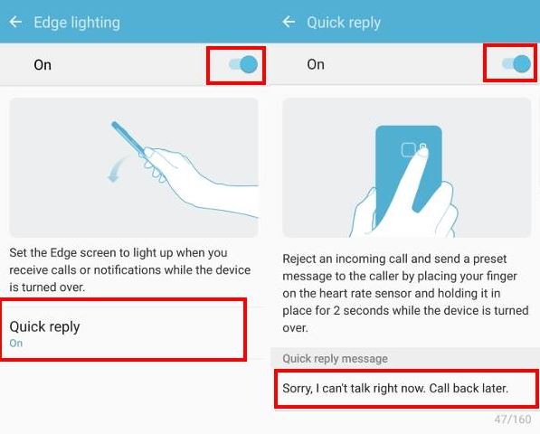 - In addition to lighting the edge screen on incoming calls and notifications, you can do more with this feature. So, don’t hesitate to finish what you have started and also enable quick replay with edge lighting by tapping Quick reply;
