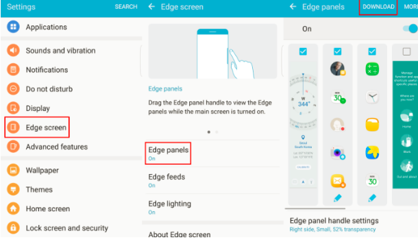 - Go to Edge panels and tap the Download button to enter the Edge Specials section of Samsung’s Galaxy Apps store;