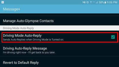 - You can also edit the Driving Auto Reply Message, when this option is enabled.
