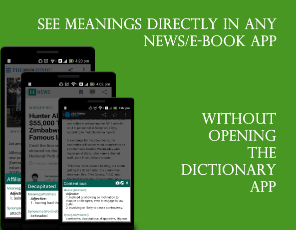 You can use Quick Dictionary to get word definition inside any reading app without even opening the dictionary app from outside, so you are probably aware of the fact that this saves lot of time while reading and makes search for definitions very fast. Even more, I bet that you will love to hear the fact that it works offline. It allows user to save their own definition and even edit the dictionary.