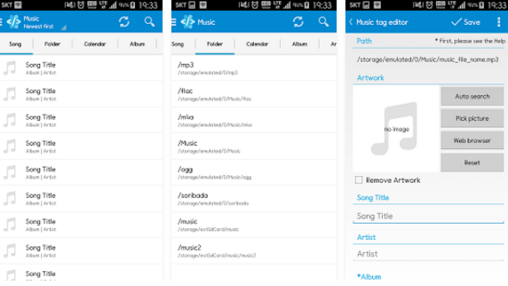 Yes, the app supports folder, album, and artist list for viewing of songs to edit, or you can just search for them within the app and I can assure you that it will run fast and smooth, without any sort of bugs to worry about. For album covers, you can choose one from your local storage or even from the web. If you find this as being too much of a trouble with so many options out there, then the app comes with an auto search function that automatically grabs the album art (from Last.fm, I think) if the MP3 file has correct tags.
