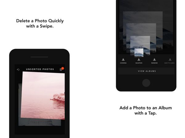 When you enter the app, all of your unsorted photos are presented to you in a queue. Swiping left or right moves through your queue, just as swiping up tosses a photo into a trash bin, and tapping on a series of labels at the bottom of the screen lets you save photos into albums or create new ones. That is how simple things are this time! In addition, there are tools for comparing similar photos, for sharing entire albums over email and others that you will discover on your own.