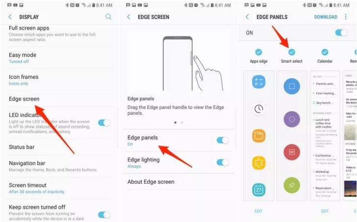 - To add the Smart Select tool, open Settings > Display > Edge screen > Edge panels > tap the Smart Select panel to enable it;