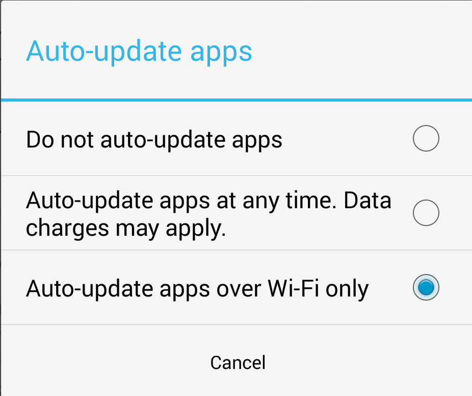 Auto-update apps over Wi-Fi only – this is the one that you must select.