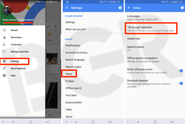 - In this menu, tap on Ok Google detection and set up the assistant;