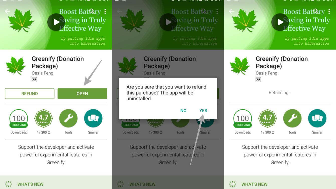 - Follow the on-screen instructions to get your money back and uninstall the app or game;