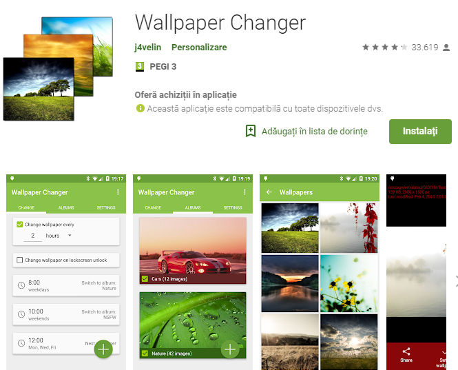 This is a tool with a simple, but nice design and it cannot disappoint you. Wallpaper Changer allows you to automatically change the wallpaper based on several conditions. A single click on a widget is the only requirement, just as you can also choose to enable a timer to automatically change your wallpaper on a predefined time or when entering a specific location.