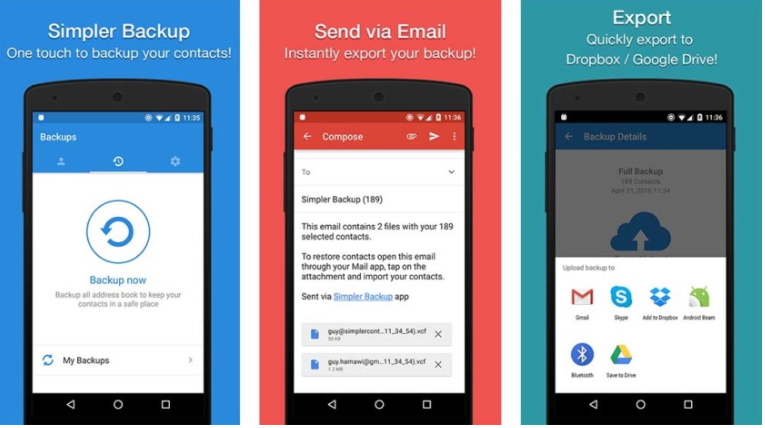 Well, this app basically what the name says. It backs up your contacts. You can do that with a single touch and send yourself a .vcf attachment via email. Like that, all your contacts can easily be restored at any time by simply opening .vcard file through your mailbox.
