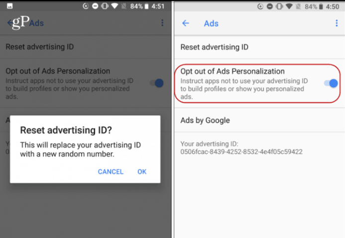 So, even if it is not a must to reset the Google advertising ID, you can do so to generate a new Google Advertising ID. This will basically get a fresh start with the interest-based ads that Google displays. Or you may opt out of the interest-based ads altogether by unchecking the Opt out of interest-based ads checkbox. When doing so, Google ignores your advertising ID, and displays random ads on your Android device’s screen.
