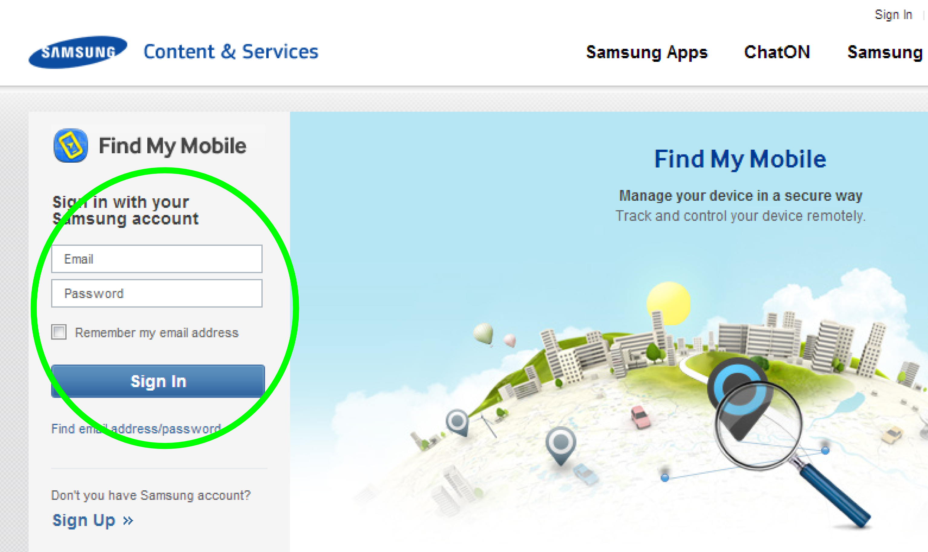 - First of all, you havr to open a web browser and visit the official Samsung Find My Mobile website;