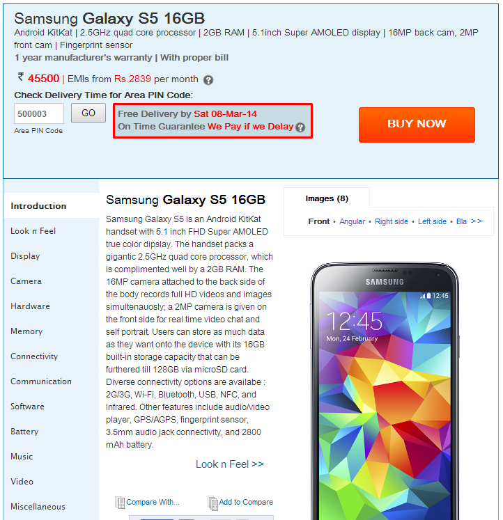 You can only imagine that there is no one that can confirm making such an order and receiving it up to this moment, but things seem more than serious. The Indian retailer clearly mentions that users will even receive a fee of Rs.50 ($0.8) for every day the order is delayed, which is even more surprising if we take inconsideration that other much popular retailers from all over the world haven’t even started pre-ordering the device up to now. As you remember, Amazon Spain has just listed the 16GB Samsung Galaxy S5 version on its website for no less than €729.00, as well as UK-based retailer Clove also has it for £458.33, but from here to actually offering it to its buyers there is a long way.