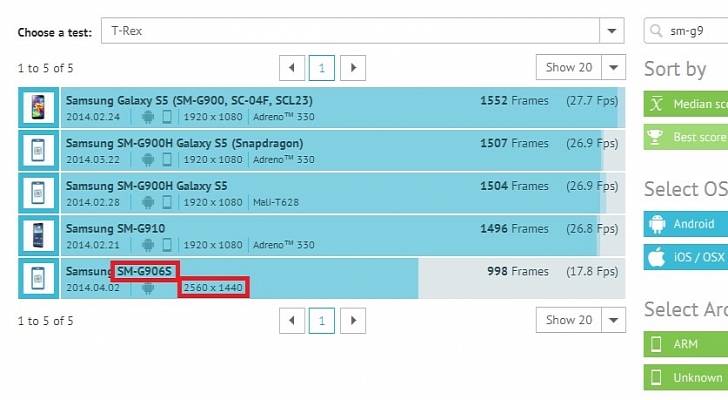 We all know that earlier rumors suggested that a premium variant of the Galaxy S5 with metallic build and better resolution would arrive this year, but JK Shin denied the existence of such a premium Galaxy S5. With the Galaxy S5 right around the corner, speculations regarding a premium line are back, thanks to another benchmark about Samsung’s upcoming SM-G906S device. We all know that benchmarks are not a confirmation of anything, but they usually give us some clues regarding information that isn’t typically available until a company officially announces a product. And this might be the case of this Samsung SM-G906S spotted at GFXBench too.