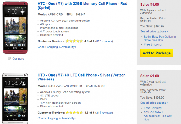 HTC One (M7) – Surprising $1 Best Buy Deal
