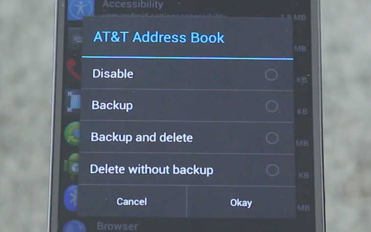 If you want to permanently remove the apps that you are never going to use, you can open No Bloat on your LG G Flex, click on Backed Up Apps and then tap on any app you want to remove entirely. Then, click ‘Delete Backup’ and OK. Once removed, it is difficult to reinstall this app without scouring the internet for the apk replacement, so be sure that this is what you really want and that the app doesn’t control anything you might use.