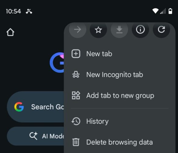 - Open your browser app and tap on the menu icon (three dots) in the top right corner.