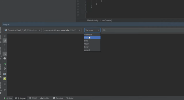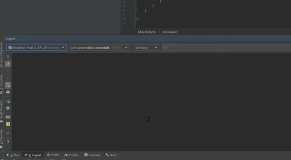 4. Open Logcat in Android Studio.