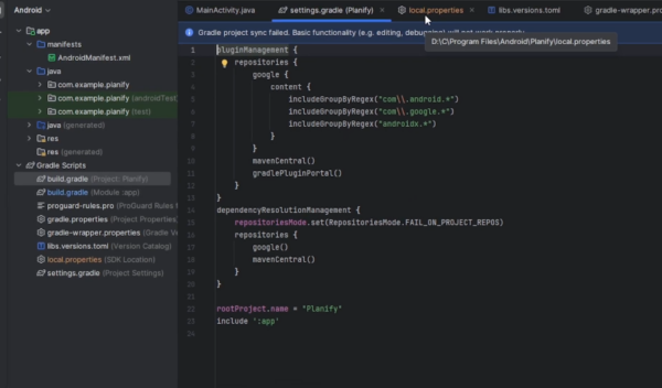 - Mismatched Android SDK versions