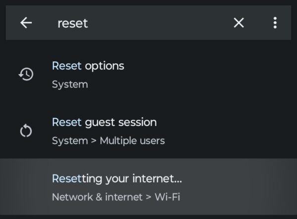 Open Settings on your Android phone, and type “Reset” into the search bar. Select “Reset Bluetooth and Wi-Fi.”
