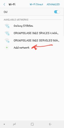 Inside Wi-Fi settings, choose Add network or Add Wi-Fi network.