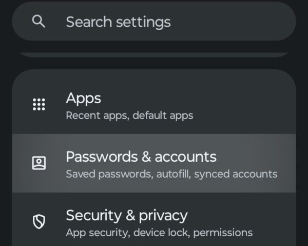 1. Restart your device and return to Settings > Passwords & Accounts.