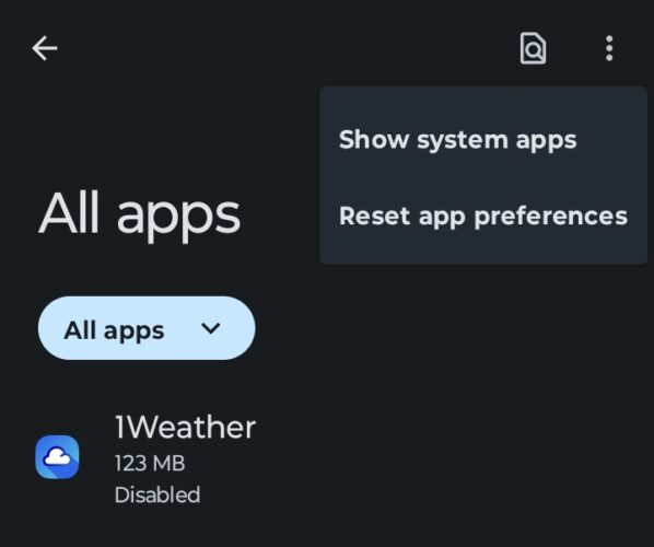 Resetting app preferences won’t delete any apps or data. It simply restores default settings that may have been changed. Open Settings and go to Apps. Tap the three dots icon in the top right, then select Reset App Preferences. Confirm by tapping Reset Apps.