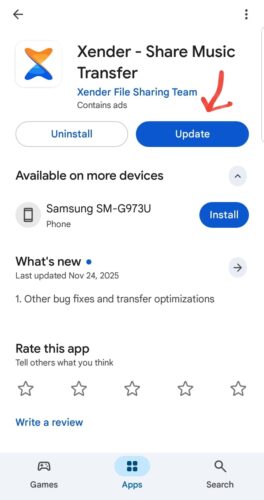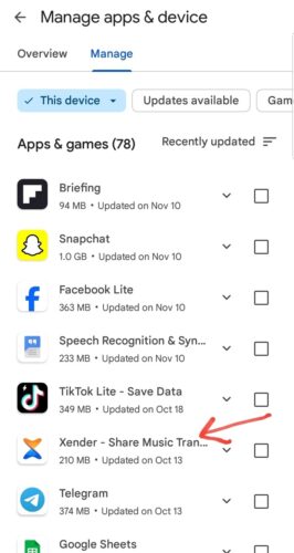 3. Locate the app and check for available updates (In this case, it’s my Xender app)