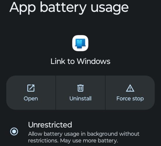 On Android, go to Settings, Apps, find Link to Windows, tap Uninstall, and confirm. Restart your phone. After restarting, open the Play Store, search for “Link to Windows,” and install it fresh. Set it up by scanning the QR code from your PC’s Phone Link app.