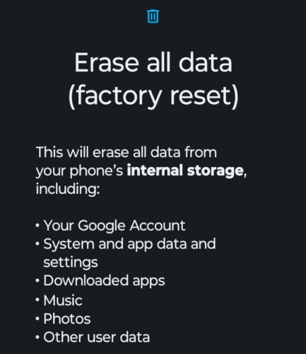 A factory reset erases everything and returns your phone to its original state. Only use this option after exhausting other solutions and backing up all important data.
