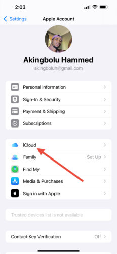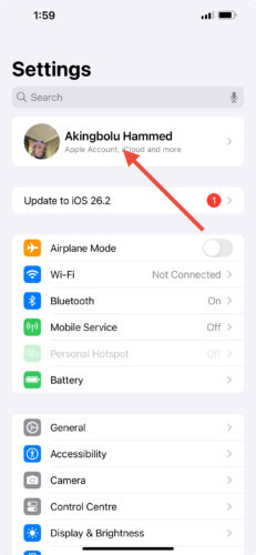 2. Tap your Apple ID name at the top