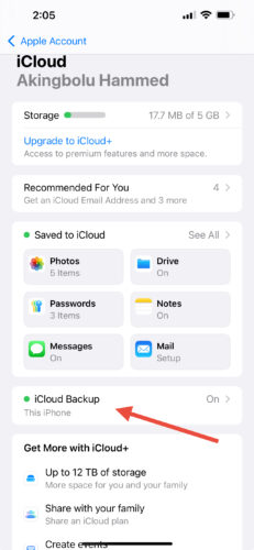 5. Tap iCloud backup