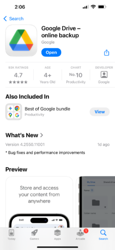 1. Download Google Drive from the App Store on your iPhone