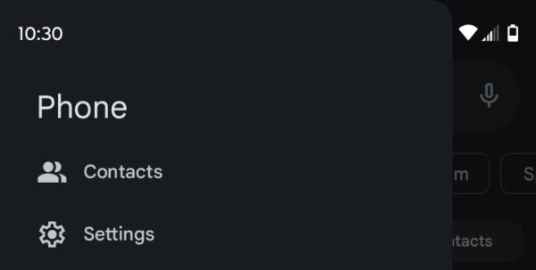 1. Open your Phone app and tap the three-dot menu icon in the top right corner or the “Hamburger” menu on the left side