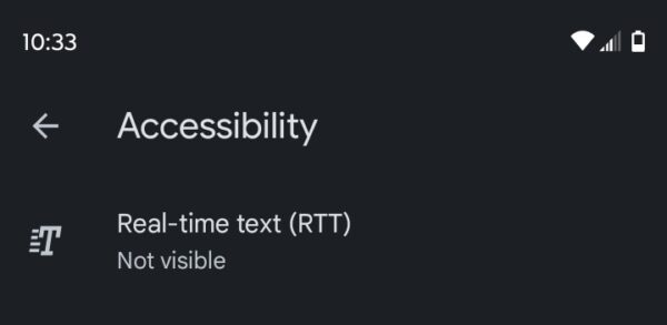 Some Android phones follow a slightly different path, depending on the manufacturer. If you can’t find RTT in your Phone app settings, try the main Settings app. Go to Settings > Accessibility and search for RTT or Real-time text there.